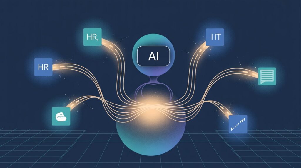 Modern AI-powered virtual assistants for enterprises operate as an intelligent layer between employees and the complex web of enterprise systems. They integrate with identity management, HRIS platforms like Workday, IT service management tools, knowledge bases, and productivity suites — creating a unified experience where employees can accomplish anything through natural conversation.